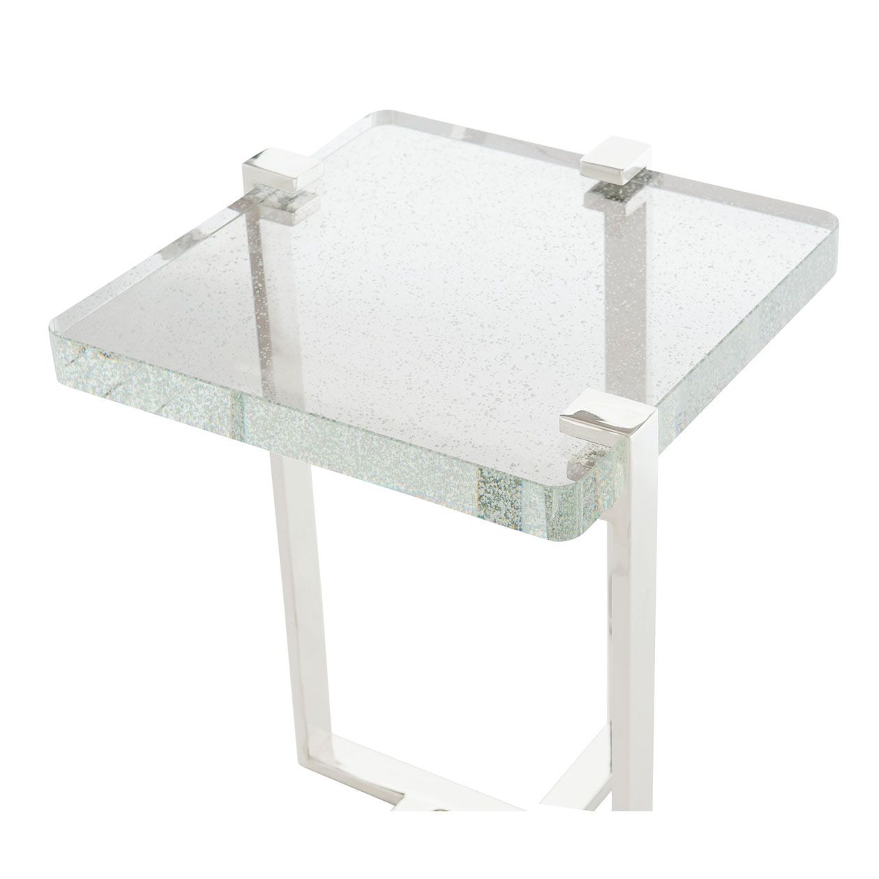 From the Exquisite Living exclusive line of furniture. The Lexi Accent Table features tubular polished stainless steel base with bubble glass top. Includes Adjustable glides.